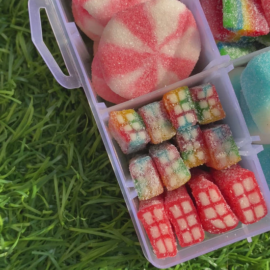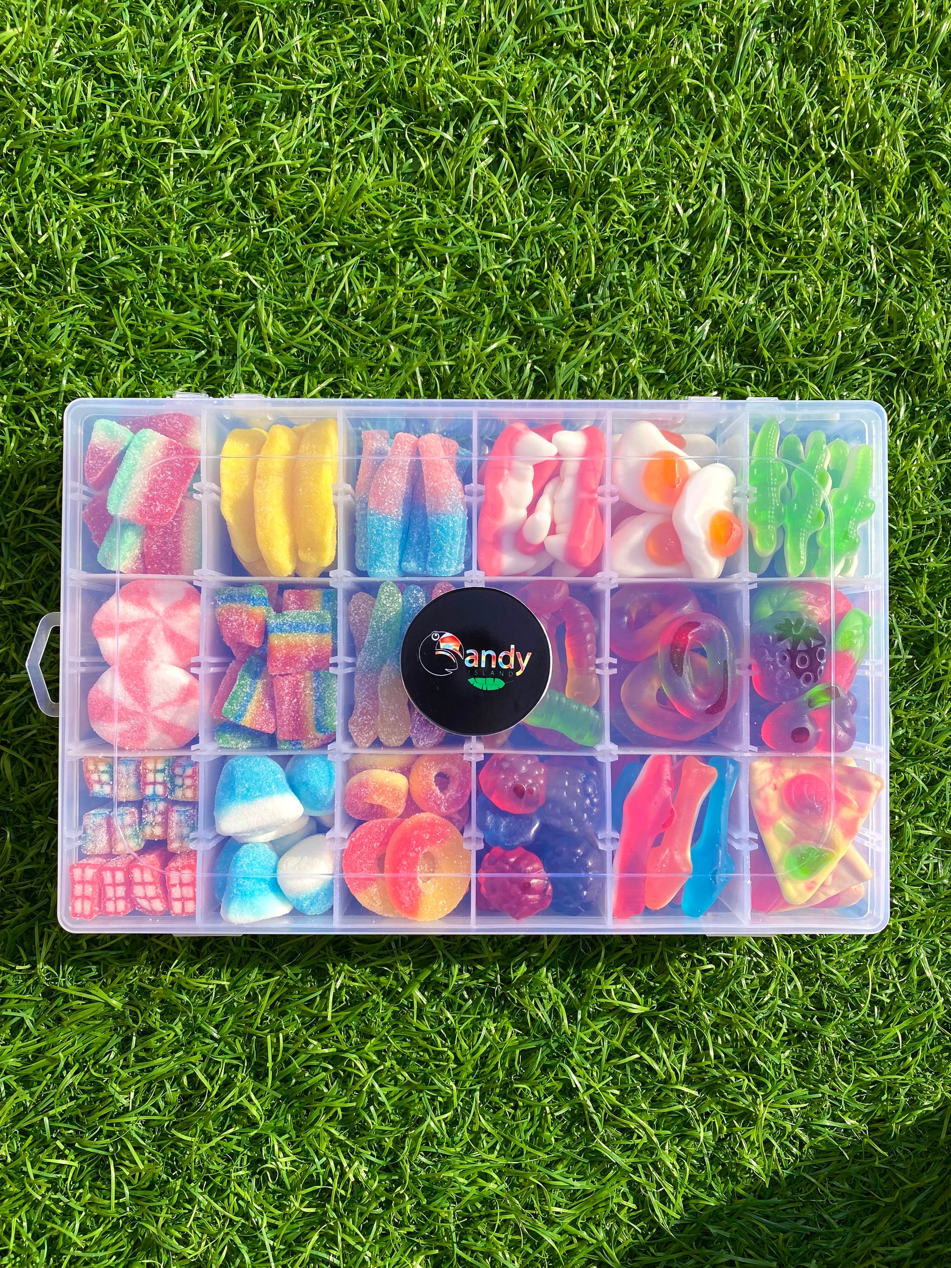 A 1.2KG premium candy collection, 18 compartments filled with different gummies, sours, and sweets Perfect for gifting, sharing, or treating yourself to a delicious mix of flavors and fun.✨🍭